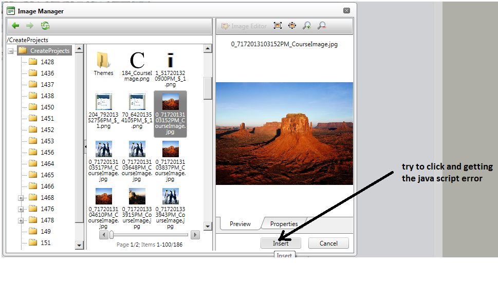 i have another problem with editor if i use ExternalDialogsPath="~/EditorDialogs" and when i click on image manger and trying to insert an image then i have an java script error and nothing is happening(image does not show in editor) .