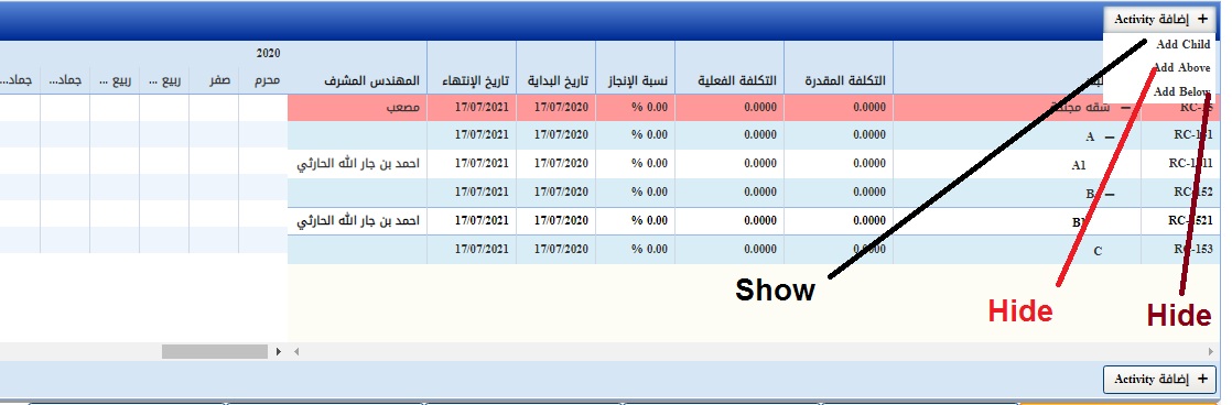 Hi, How can I Show the Add Child only and at the same time is hide Add Above and Add Below ?