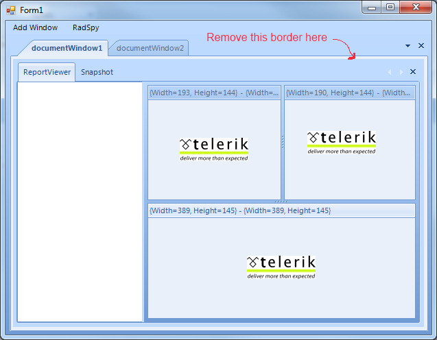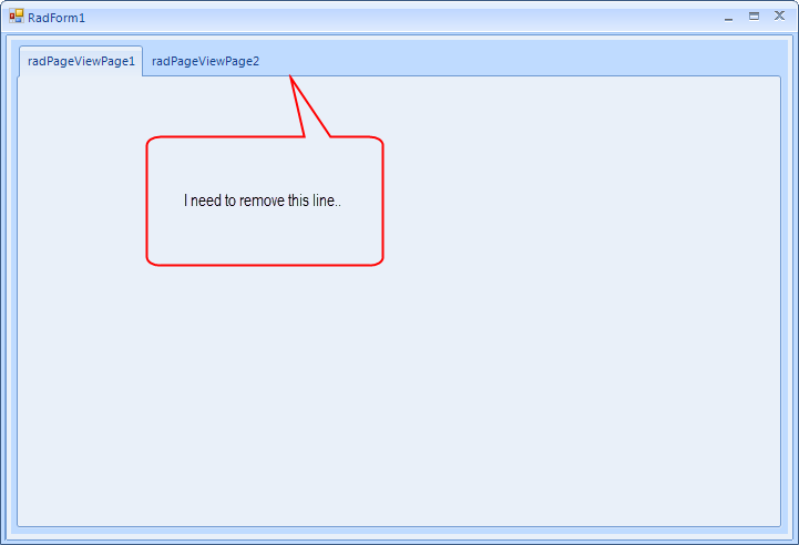 RadPageViewStripElement stripElement = radPageView1.ViewElement as RadPageViewStripElement;if (stripElement != null){ stripElement.ContentArea.BorderPadding = new Padding(0, -2,0, 0);}Off topic, I would like to kindly ask you to separate the questions that are not related to each other in separate threads. This will keep the forums clean and easy to navigate.