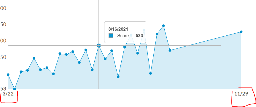 This looks untidy so we need to be able to hide all of the dates that don't have any data/a point. So for example anything from the 9th of July to the 19th of August should be completely hidden from the chart. How can we achieve this?