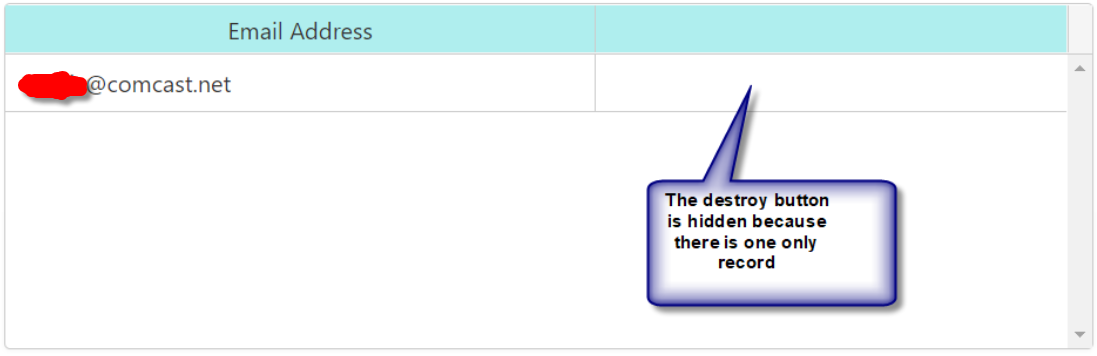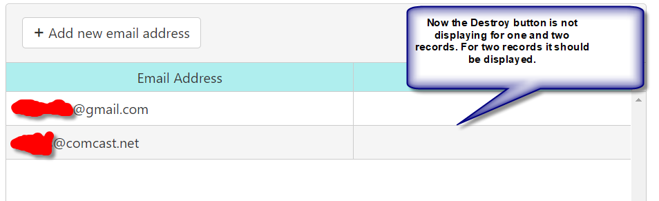 But if I click the Add button then a new records appears and destroy button will appear for last record to allow to delete the very last record.