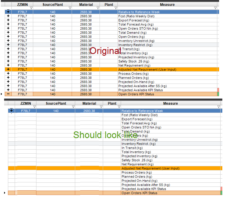 I attached a screenshot which shows my actual grid and a grid which looks like it should be.