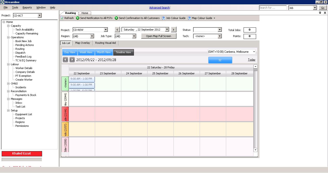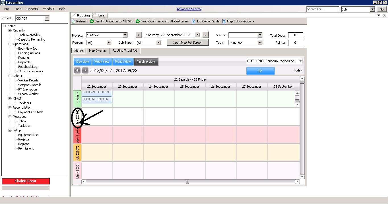 --> shade cells by red on (Date 22/09/2012) , on (time between 10 to 13) , for the (resource "Alan Smith")