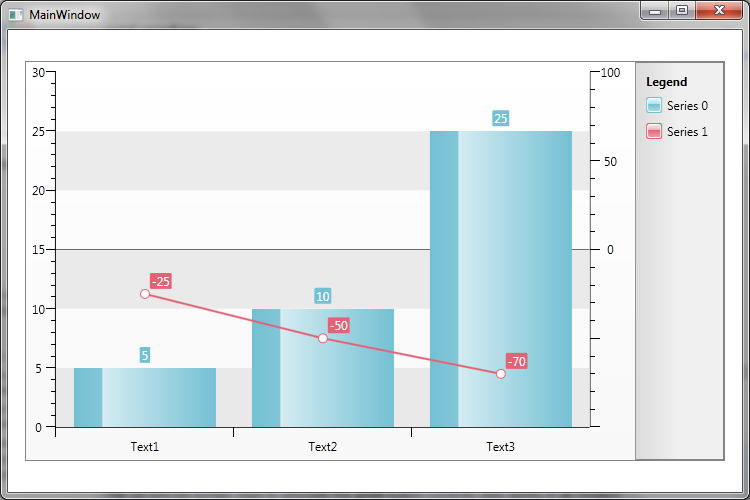 secondSeriesMapping.SeriesDefinition.AxisName = "secondary";AxisY axisY1 = new AxisY();axisY1.AxisName = "secondary";axisY1.AutoRange = false;axisY1.MinValue = -100;axisY1.MaxValue = 100;axisY1.Step = 50;radChart.DefaultView.ChartArea.AdditionalYAxes.Add(axisY1);foreach (TickPoint point in axisY1.TickPoints) { if (point.Value < 0) { point.Label = " "; } }Best wishes,