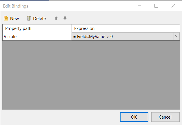 Corresponding to these panels, I have 3 fields in the data source V1Display, V2Display and V3Display. The values in these fields are either 0 or 1, with 1 indicating the panel should be displayed.