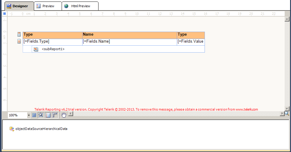 I have a hierarchical data structure and I am using a sub report with object data source to recursively iterate over it.