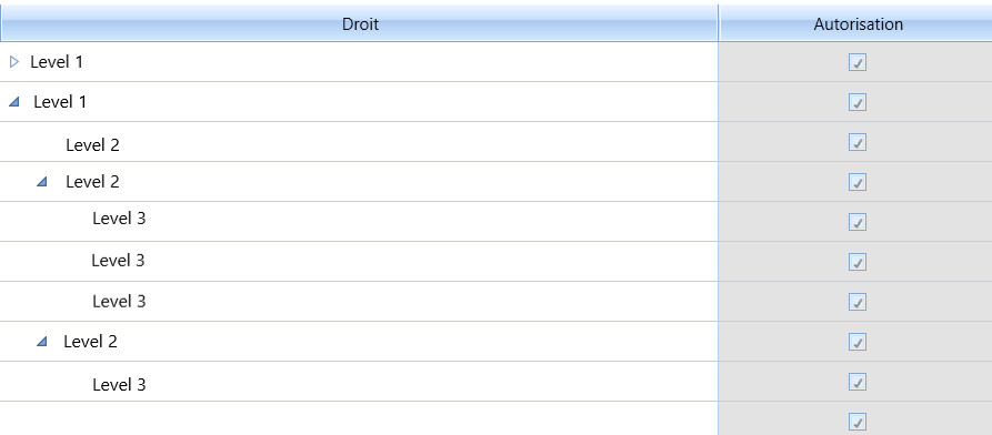 Each level of the grid has the same fields, but the latest column on each level should be aligned to the right at the same place.
