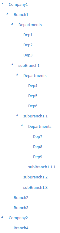 - When expanding on the Branch, you will always see a department list and sub branches (departments do not have sub departments).
