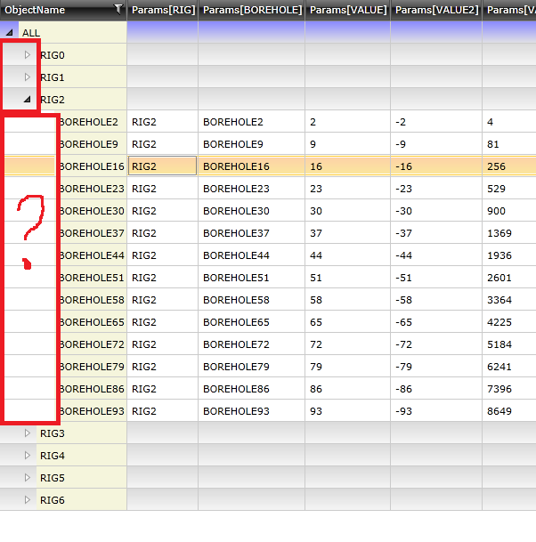 <UserControl.Resources> <Style TargetType="telerik:GridViewRow" x:Name="style1"> <Setter Property="Background"> <Setter.Value> <LinearGradientBrush EndPoint="0.5,1" StartPoint="0.5,0"> <GradientStop Color="#882222FF" /> <GradientStop Color="#88CCCCCC" Offset="1"/> </LinearGradientBrush> </Setter.Value> </Setter> </Style> <Style TargetType="telerik:GridViewRow" x:Name="style2"> <Setter Property="Background"> <Setter.Value> <LinearGradientBrush EndPoint="0.5,1" StartPoint="0.5,0"> <GradientStop Color="#44777777" /> <GradientStop Color="#44DDDDDD" Offset="1"/> </LinearGradientBrush> </Setter.Value> </Setter> </Style> <Style TargetType="telerik:GridViewRow" x:Name="style3"> <Setter Property="Background" Value="White" /> </Style> </UserControl.Resources> <Grid x:Name="LayoutRoot"> <telerik:RadTreeListView HorizontalAlignment="Stretch" Name="radTreeListView1" VerticalAlignment="Stretch" AutoGenerateColumns="False" ShowColumnFooters="True" RowIndicatorVisibility="Collapsed" FrozenColumnsSplitterVisibility="Collapsed" IsExpandedBinding="{Binding IsExpanded, Mode=TwoWay}" FrozenColumnCount="1" > <telerik:RadTreeListView.ChildTableDefinitions> <telerik:TreeListViewTableDefinition ItemsSource="{Binding Items, Mode=TwoWay}"/> </telerik:RadTreeListView.ChildTableDefinitions> <telerik:RadTreeListView.Columns> <telerik:GridViewDataColumn DataMemberBinding="{Binding ObjectName}" Background="Beige"/> <telerik:GridViewDataColumn DataMemberBinding="{Binding Params[\RIG\] }" /> <telerik:GridViewDataColumn DataMemberBinding="{Binding Params[\BOREHOLE\]}" /> <telerik:GridViewDataColumn DataMemberBinding="{Binding Params[\VALUE\]}" /> <telerik:GridViewDataColumn DataMemberBinding="{Binding Params[\VALUE2\]}" /> <telerik:GridViewDataColumn DataMemberBinding="{Binding Params[\VALUE3\]}" /> </telerik:RadTreeListView.Columns> </telerik:RadTreeListView> </Grid>ObservableCollection<MyStruct> _hierarchyRelations = new ObservableCollection<MyStruct>(); private class HierarchyObjectRowStyle : StyleSelector{ public HierarchyObjectRowStyle() { Styles = new ObservableCollection<Style>(); } public override Style SelectStyle(object item, DependencyObject container) { if (item is GridHierarchyItem) { GridHierarchyItem node = item as GridHierarchyItem; if (node.Level < Styles.Count && node.Items != null && node.Items.Count != 0) { return Styles[node.Level]; } if (Styles.Count > 0) { return Styles[Styles.Count - 1]; } } return null; } public ObservableCollection<Style> Styles { get; set; }}public MainPage(){ InitializeComponent(); var data = new MyStruct(); data.GetRandomData(); var rowStyle = new HierarchyObjectRowStyle(); rowStyle.Styles = new ObservableCollection<Style>(); rowStyle.Styles.Add((Style)this.Resources["style1"]); rowStyle.Styles.Add((Style)this.Resources["style2"]); rowStyle.Styles.Add((Style)this.Resources["style3"]); radTreeListView1.RowStyleSelector = rowStyle; radTreeListView1.ItemsSource = data;}Regards