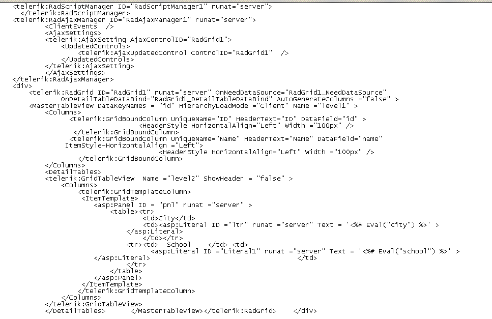 I have set the HierarchyLoadMode="Client" on both the Radgrid and the mastertableview of the detailtables.
