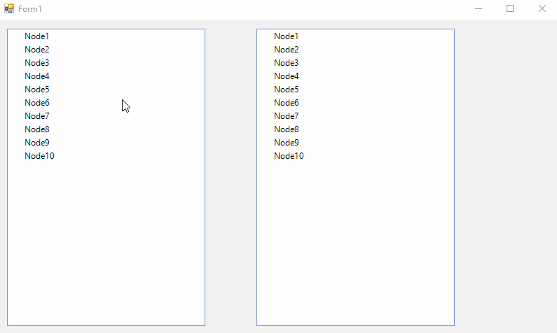 When i highlight one item on treeview 1 and drag and drop to tree view 2. While the mouse button is kept pressed, and i hover on treeview 2, i would want the hovered node to be highlighted or style changed.
