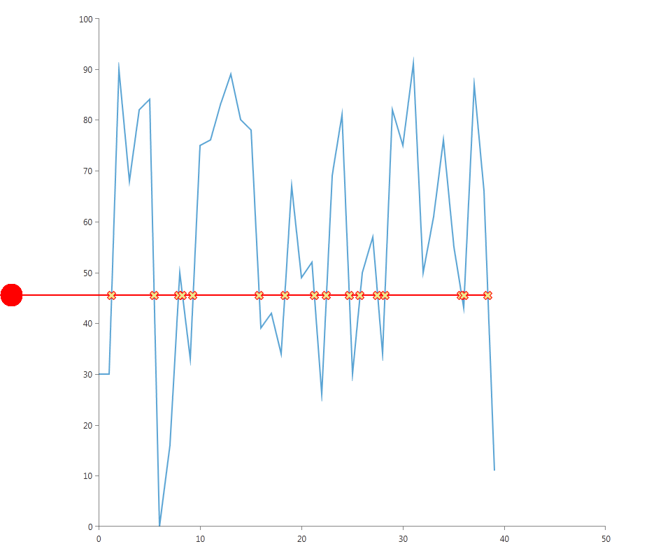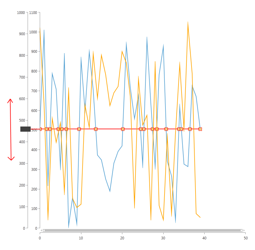 I'm currently trying to achieve functionality similar to the trackball behavior, but I actually need to display a horizontal line, that crosses the given ScatterLineSeries and starts at the corresponding vertical axis. I have to draw a slider on that axis, so I will be able to move this line by moving the slider along the axis (I've attached an image to explain what I mean).