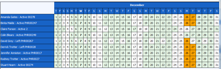 Hi. I need to show a calendar view as a horizontal list. Therefore showing list of employees on the left and a month view to the right for each employee. Do you have any ideas? I have attached a screen-shot for review.