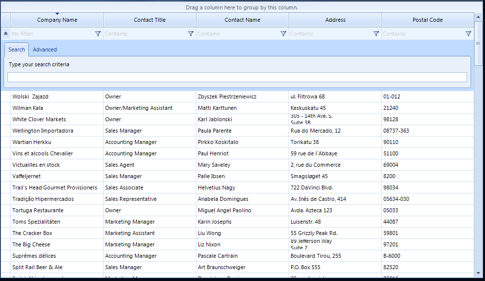 I am trying to integrating a search text box on a GridView between the grouping panel + filters access buttons and the actual grid itself (as in the example of advanced search on Winforms GridView), using WPF.