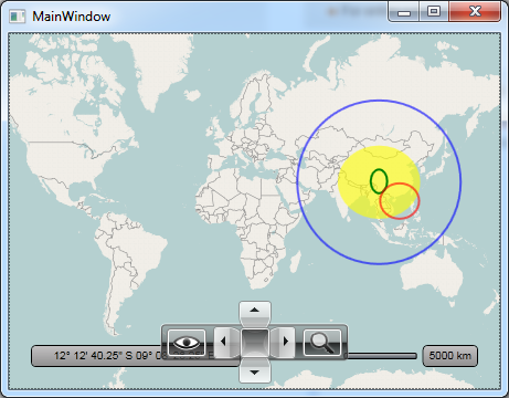 public class ViewModel{ public List<Location> Locations { get { return new List<Location>() {new Location(0, 0)}; } } }<Window x:Class="TelerikMapTest.MainWindow" xmlns:telerik="http://schemas.telerik.com/2008/xaml/presentation" xmlns:TelerikMapTest="clr-namespace:TelerikMapTest" Title="MainWindow" Height="350" Width="525"> <Window.DataContext> <TelerikMapTest:ViewModel /> </Window.DataContext> <Window.Resources> <DataTemplate x:Key="template"> <telerik:MapEllipse Width="1000" Height="1000" Fill="Blue" Opacity="0.6" telerik:MapLayer.Location="{Binding}"> <telerik:MapLayer.HotSpot> <telerik:HotSpot X="0.5" Y="0.5" XUnits="Fraction" YUnits="Fraction" /> </telerik:MapLayer.HotSpot> </telerik:MapEllipse> </DataTemplate> </Window.Resources> <Grid> <telerik:RadMap> <telerik:RadMap.Provider> <telerik:OpenStreetMapProvider /> </telerik:RadMap.Provider> <telerik:InformationLayer ItemsSource="{Binding Locations}" ItemTemplate="{StaticResource template}" /> <telerik:InformationLayer> <telerik:MapEllipse Width="1000" Height="1000" Fill="Yellow" Opacity="0.6" telerik:MapLayer.Location="0,0"> <telerik:MapLayer.HotSpot> <telerik:HotSpot X="0.5" Y="0.5" XUnits="Fraction" YUnits="Fraction" /> </telerik:MapLayer.HotSpot> </telerik:MapEllipse> </telerik:InformationLayer> </telerik:RadMap> </Grid></Window>