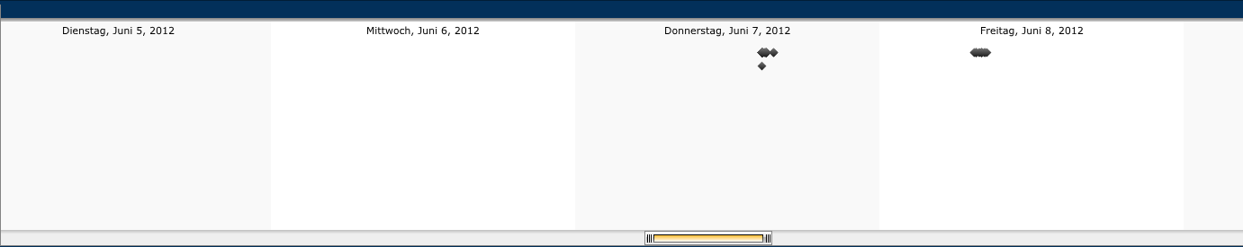 <telerik:RadTimeline PeriodStart="{Binding MinViewDate, Mode=TwoWay}" PeriodEnd="{Binding MaxViewDate, Mode=TwoWay}" StartPath="LastUpdate" ItemsSource="{Binding Activities}"> <telerik:RadTimeline.Intervals> <telerik:DayInterval /> <telerik:HourInterval /> <telerik:MinuteInterval /> </telerik:RadTimeline.Intervals> </telerik:RadTimeline>Max. zoom level is day - see "view.png". Can you explain me, what I am doing wrong?