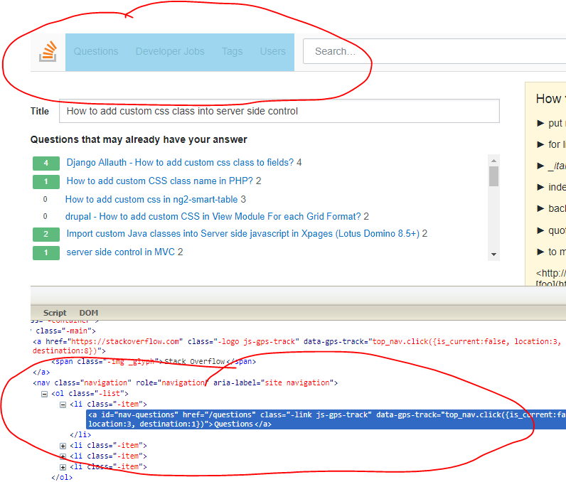 I want to know how to add custom css class into server side control. Let's say I want to create a navigation like stackoverflow. For this I am using Telerik's radmenu control. Now here is the problem