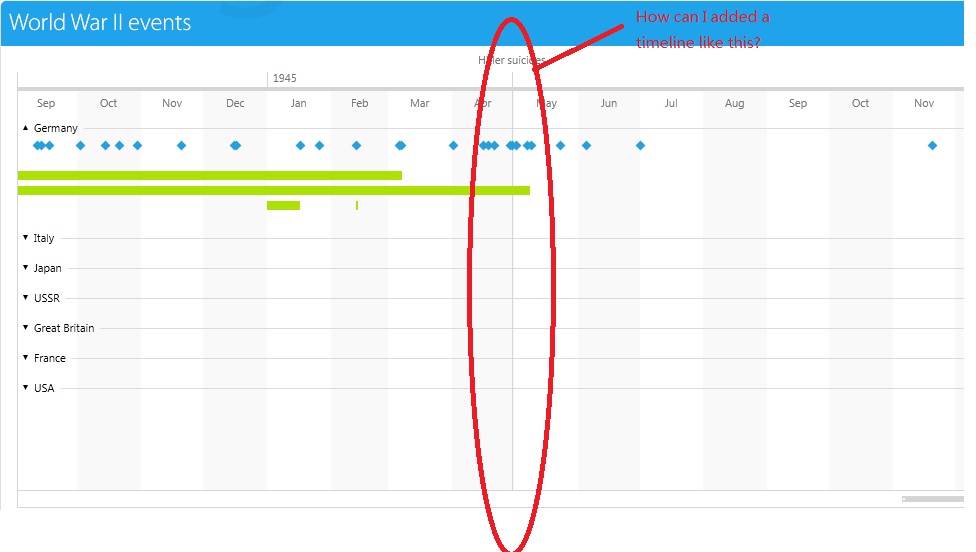 I followed this link: http://demos.telerik.com/silverlight/#Timeline/Grouping