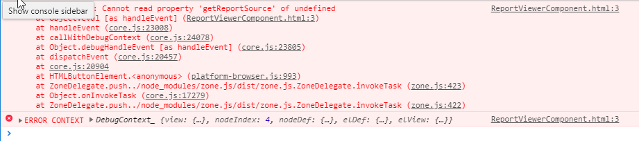 01.<button (click)="viewer1.refreshReport()">Refresh</button>02.<button (click)="viewer1.setReportSource(rs)">setReportSource</button>03.<button (click)="temp = viewer1.getReportSource()">getReportSource</button>04. 05.<pre>{{temp|json}}</pre>06.<pre>{{reportSource|json}}</pre>07. 08.<tr-viewer #viewer1 *ngIf="reportSource"09. [containerStyle]="viewerContainerStyle"10. [reportServer]="creds"11. [viewMode]="'PRINT_PREVIEW'"12. [scaleMode]="'SPECIFIC'"13. [scale]="1.0"14. [reportSource] = "reportSource"15.></tr-viewer>