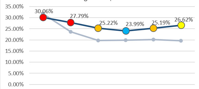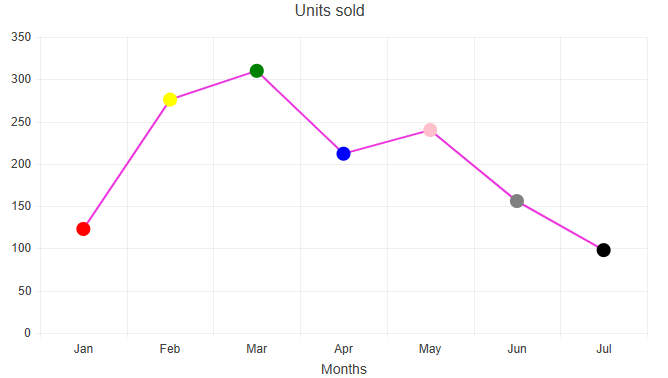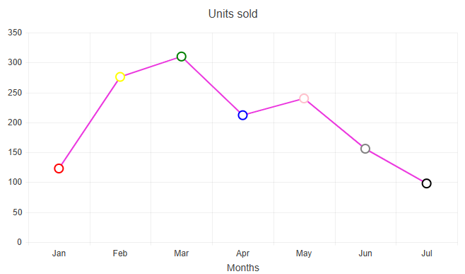 How can I create an Angular LineChart where each point on the chart has a different color, as shown in the attached image?