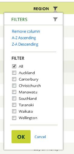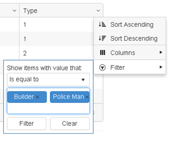 The following example shows the built-in capabilities for customization of the filter menu: Filter menu customization. All additional changes in the look and feel of the filter menu are considered custom solutions and you will have to handle filterMenuInit event of the grid and tweak the UI per your needs.