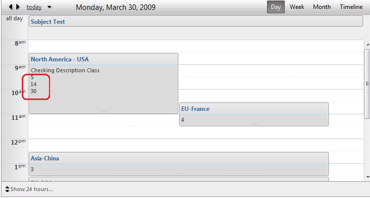 <AppointmentTemplate> <div class="rsAptSubject"> <%# Eval("Subject")%> </div> <div> <%# Eval("Description")%></div> <div> <%# Eval("Continent")%></div> <div> <%# Eval("Country")%></div> <div> <%# Eval("City")%></div> </AppointmentTemplate> <AdvancedEditTemplate> <scheduler:AdvancedForm runat="server" ID="AdvancedEditForm1" Mode="Edit" Subject='<%# Bind("Subject") %>' Start='<%# Bind("Start") %>' End='<%# Bind("End") %>' Description='<%# Bind("Description") %>' RecurrenceRuleText='<%# Bind("RecurrenceRule") %>' Continent='<%# Bind("Continent") %>' Country='<%# Bind("Country") %>' Annotation='<%# Bind("Annotations") %>' MyName='<%# Bind("MyName") %>' City='<%# Bind("City") %>'/> </AdvancedEditTemplate> <AdvancedInsertTemplate> <scheduler:AdvancedForm runat="server" ID="AdvancedInsertForm1" Mode="Insert" Subject='<%# Bind("Subject") %>' Start='<%# Bind("Start") %>' End='<%# Bind("End") %> ' Description='<%# Bind("Description") %>' RecurrenceRuleText='<%# Bind("RecurrenceRule") %>' Continent='<%# Bind("Continent") %>' Country='<%# Bind("Country") %>' Annotation='<%# Bind("Annotations") %>' MyName='<%# Bind("MyName") %>' City='<%# Bind("City") %>'/> </AdvancedInsertTemplate> </telerik:RadScheduler> <asp:SqlDataSource ID="SqlDataSource1" runat="server" ConnectionString="<%$ ConnectionStrings:TelerikConnectionString %>" DeleteCommand="DELETE FROM [Appointments] WHERE [ID] = @ID" InsertCommand="INSERT INTO [Appointments] ([Subject], [Start], [End], [UserID], [RoomID], [RecurrenceRule], [RecurrenceParentID], [Description], [Continent], [Country], [Annotations],[MyName],[City]) VALUES (@Subject, @Start, @End, @UserID, @RoomID, @RecurrenceRule, @RecurrenceParentID, @Description, @Continent, @Country, @Annotations,@MyName,@City)" SelectCommand="SELECT * FROM [Appointments]" UpdateCommand="UPDATE [Appointments] SET [Subject] = @Subject, [Start] = @Start, [End] = @End, [UserID] = @UserID, [RoomID] = @RoomID, [RecurrenceRule] = @RecurrenceRule, [RecurrenceParentID] = @RecurrenceParentID, [Description] = @Description, [Continent] = @Continent, [Country] = @Country,[Annotations]= @Annotations,[MyName]= @MyName,[City]=@City WHERE [ID] = @ID"> <DeleteParameters> <asp:Parameter Name="ID" Type="Int32" /> </DeleteParameters> <UpdateParameters> <asp:Parameter Name="Subject" Type="String" /> <asp:Parameter Name="Start" Type="DateTime" /> <asp:Parameter Name="End" Type="DateTime" /> <asp:Parameter Name="UserID" Type="Int32" /> <asp:Parameter Name="RoomID" Type="Int32" /> <asp:Parameter Name="RecurrenceRule" Type="String" /> <asp:Parameter Name="RecurrenceParentID" Type="Int32" /> <asp:Parameter Name="Description" Type="String" /> <asp:Parameter Name="Annotations" Type="String" /> <asp:Parameter Name="Continent" Type="String" /> <asp:Parameter Name="Country" Type="String" /> <asp:Parameter Name="MyName" Type="String" /> <asp:Parameter Name="City" Type="String" /> <asp:Parameter Name="ID" Type="Int32" /> </UpdateParameters> <InsertParameters> <asp:Parameter Name="Subject" Type="String" /> <asp:Parameter Name="Start" Type="DateTime" /> <asp:Parameter Name="End" Type="DateTime" /> <asp:Parameter Name="UserID" Type="Int32" /> <asp:Parameter Name="RoomID" Type="Int32" /> <asp:Parameter Name="RecurrenceRule" Type="String" /> <asp:Parameter Name="RecurrenceParentID" Type="Int32" /> <asp:Parameter Name="Description" Type="String" /> <asp:Parameter Name="Annotations" Type="String" /> <asp:Parameter Name="Continent" Type="String" /> <asp:Parameter Name="Country" Type="String" /> <asp:Parameter Name="MyName" Type="String" /> <asp:Parameter Name="City" Type="String" /> </InsertParameters> </asp:SqlDataSource>0
