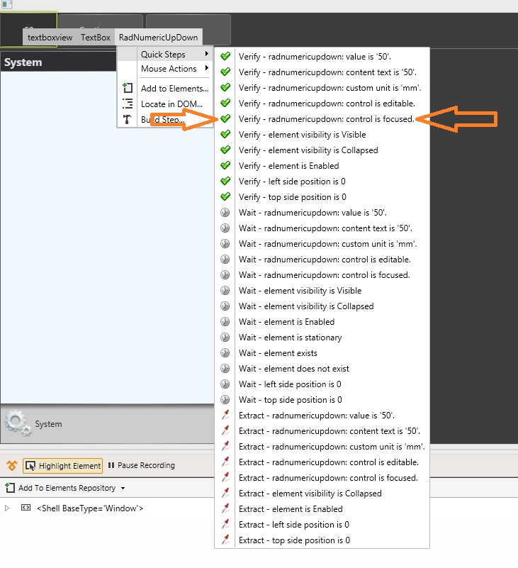 If Test Studio has no way to check what element is focused, what am I seeing here?