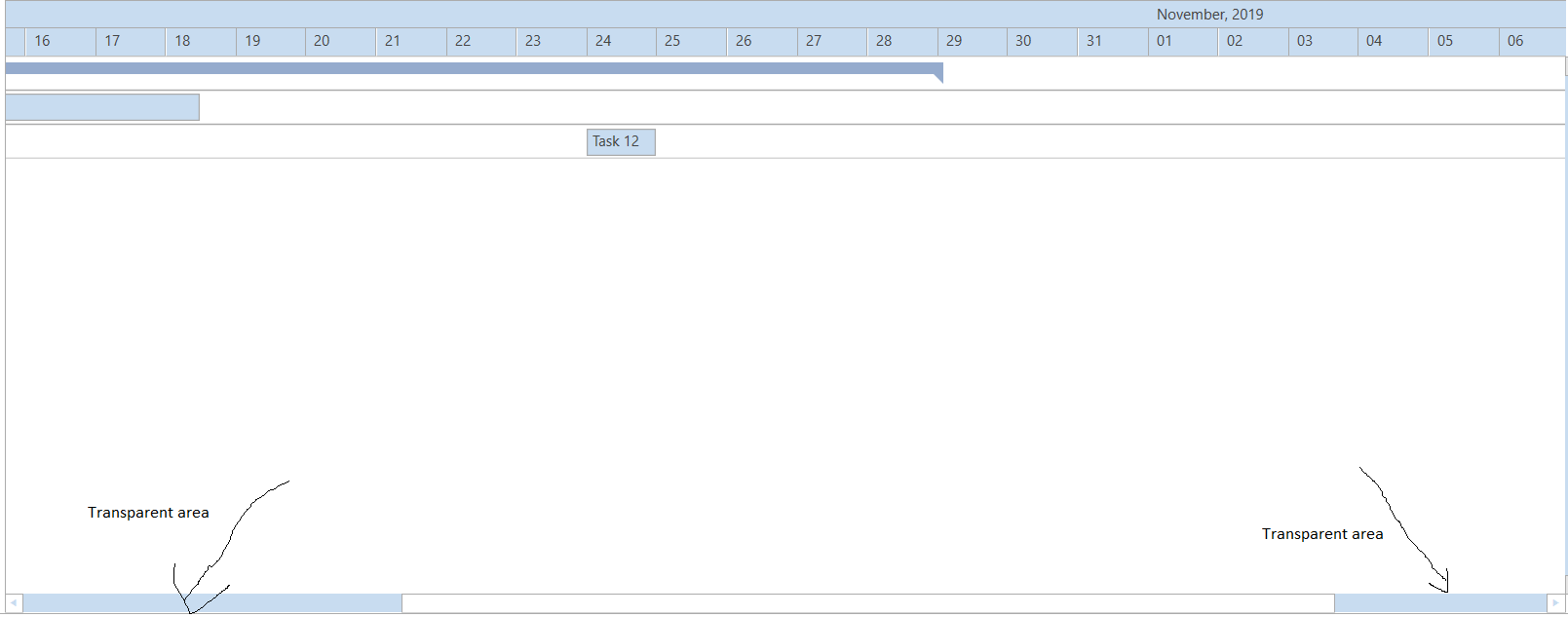 I have found an issue with above code. When I click on repeat buttons (transparent areas) of gantt's horizontal scroll, I get a completely different set of visible dates. I don't know what is happening, can you please help me with that?