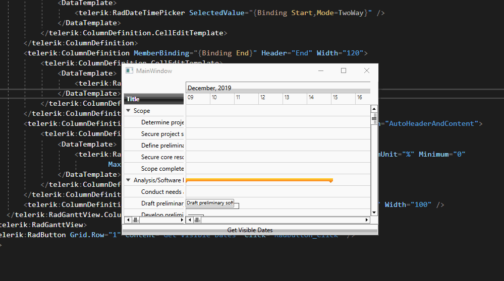 Your code works perfectly fine if I run it via the click event of that button you added to your attached project. However, I am trying to get visible dates of my gantt view through its scroll event. Basically as user scrolls horizontally, I want to be able to get current visible dates. If you try to run your code via the scroll event of gantt view, you will be able to reproduce the issue.