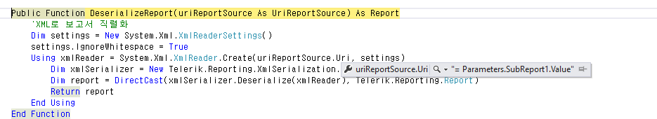 Dim report = DirectCast(xmlSerializer.Deserialize(xmlReader), Telerik.Reporting.Report)