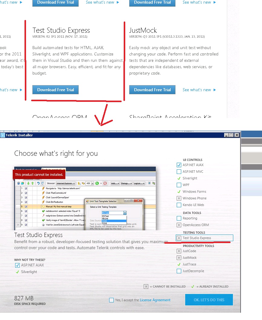 Ok, I was seeing in your site the Test Studio Express trial, but I cannot install it, even this is a FREE trial. This is not available?