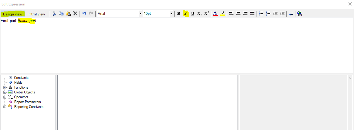 You can use HtmlTextBox. Once you add it, right-click over it -> Expression. Make sure you are in the Design view, then mark "Continued" and select Italics. Check the attached screenshot for additional reference.