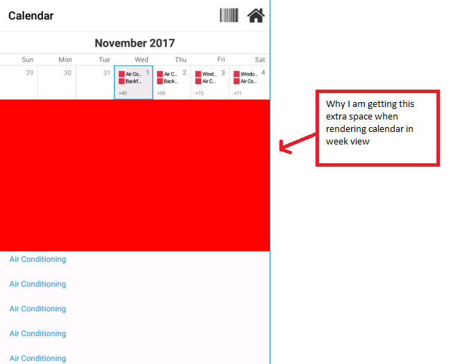 Why there is a extra space when the calendar is rendered in week view. PFA.