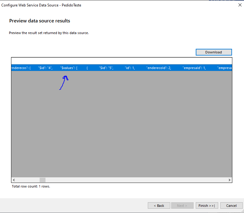 I already configure my Endpoint to receive all the values, when i configure the dataSource and download the sample, i already have the values, according in the Picture 1.