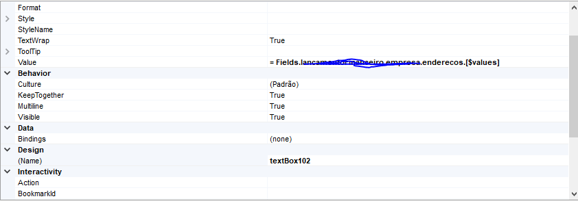 Keep in mind that the data of the $values field is available only to the bound item scope. For example, if you bind a List report item to that field, you cannot display any of the $values fields outside the list item.