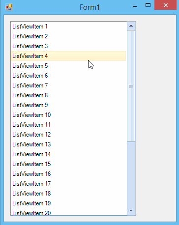 The scrolling behavior using the mouse wheel is determined by the value of the static System.Windows.Forms.MouseWheelScrollLines property. In order to alter the default implementation, you would need to use a custom RadListView control.