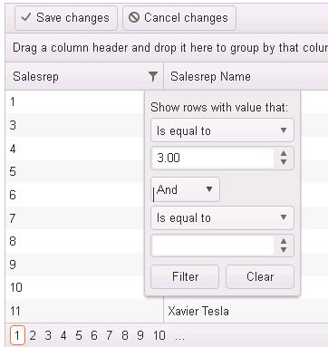 1. My salesrep column is a numeric with no decimal. When the focus is on the filter, everything is good. When I tab out, the field is shown with two decimals. (check print screen attached). Not sure what is the exact format I need to add to make this work.