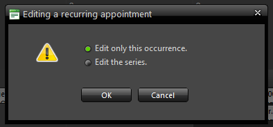 How can I stop the "editing a recurring appointment" (see attached) screen from appearing.
