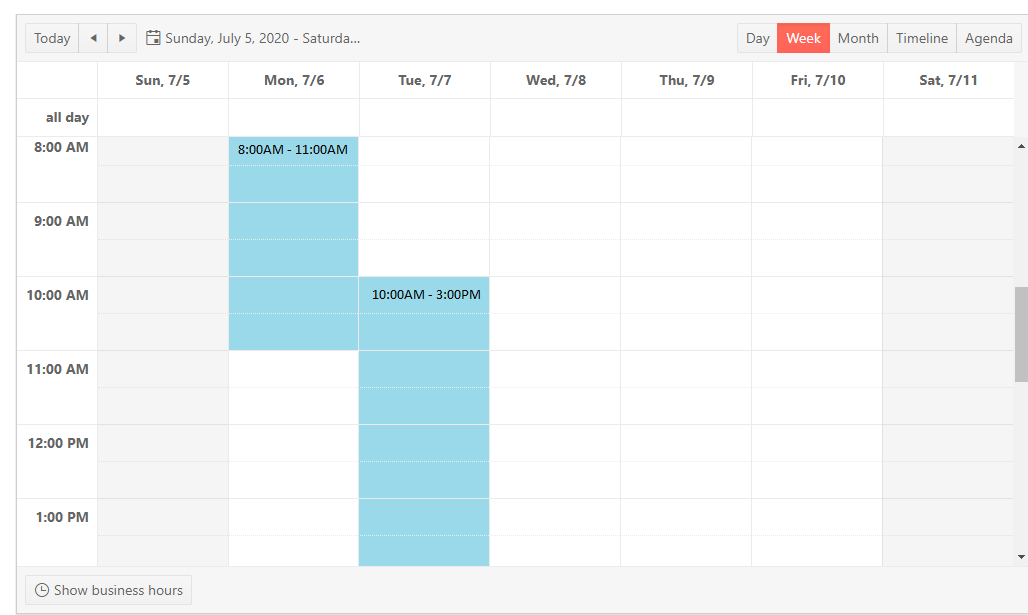 In the telerik scheduler, how can we set the background color for a specific time range, for example 8AM-11AM for Monday and 10AM-3PM Tuesday etc.