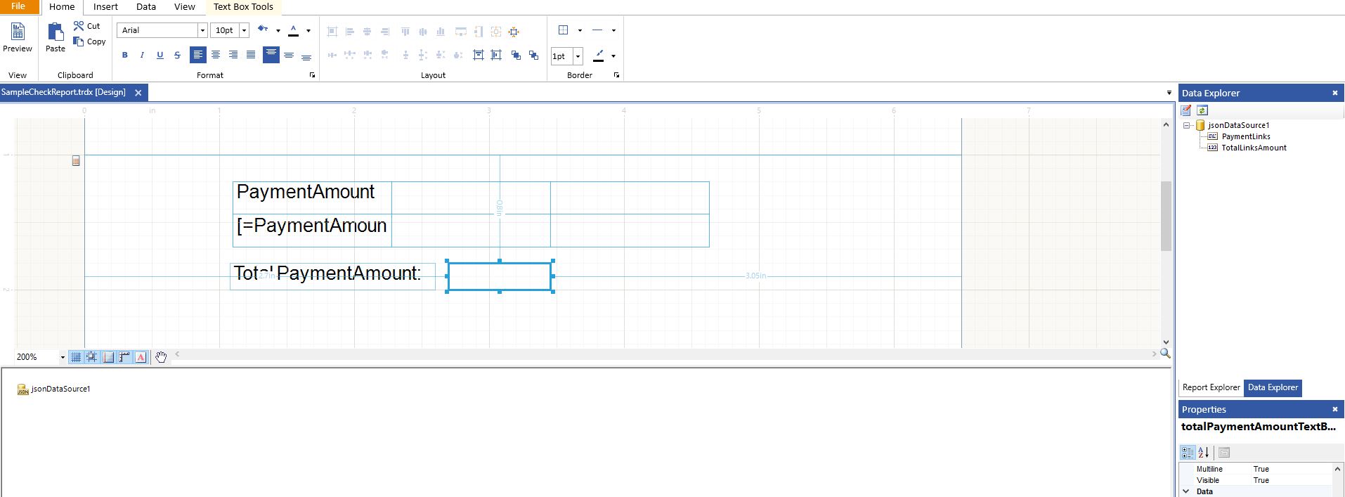 I have the report that contains a table to show some payment information, and underneath there is textBox to show sum of PaymentAmount property values.