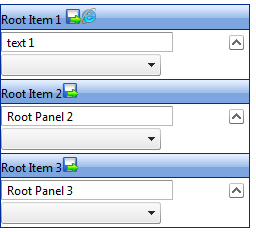 <html xmlns="http://www.w3.org/1999/xhtml"><head id="Head1" runat="server"> <title></title> <link href="CustomSkin/PanelBar.Salt.css" rel="stylesheet" /> <style type="text/css"> .RadPanelBar_Salt a.rpLink.GreenPanel.rpExpandable.rpExpanded { background-color: green; background-position: 0 -1000px; border-color: green; } </style> </head><body> <form id="form1" runat="server"> <telerik:RadScriptManager ID="RadScriptManager1" runat="server"></telerik:RadScriptManager> <telerik:RadSkinManager ID="RadSkinManager1" runat="server"></telerik:RadSkinManager> <%--<telerik:RadButton runat="server" Text="Preview Report" ></telerik:RadButton>--%> <telerik:RadPanelBar ID="RadPanelBar1" runat="server" ExpandMode="MultipleExpandedItems" Skin="Salt" EnableEmbeddedSkins="false" > <CollapseAnimation Duration="100" Type="None" /> <Items> <telerik:RadPanelItem runat="server" Text="Root RadPanelItem1" CssClass="GreenPanel" > <HeaderTemplate> Root Item 1 <asp:ImageButton ID="image1" runat="server" ImageUrl="~/images/save_go16x16.png" /><asp:ImageButton ID="ImageButton1" runat="server" ImageUrl="~/images/ie_16x16.png" /> <a class="rpExpandable"> <span class="rpExpandHandle"></span> </a> </HeaderTemplate> <ContentTemplate> <telerik:RadTextBox ID="textbox1" runat="server" Text="text 1"></telerik:RadTextBox> <telerik:RadComboBox runat="server" ID="RadComboBox1" Text="combo1"></telerik:RadComboBox> </ContentTemplate> </telerik:RadPanelItem> <telerik:RadPanelItem runat="server" Text="Root RadPanelItem2" CssClass="GreenPanel" > <HeaderTemplate> Root Item 2<asp:ImageButton ID="ImageButton2" runat="server" ImageUrl="~/images/save_go16x16.png" /> <a class="rpExpandable"> <span class="rpExpandHandle"></span> </a> </HeaderTemplate> <ContentTemplate> <telerik:RadTextBox ID="RadTextBox1" runat="server" Text="Root Panel 2"></telerik:RadTextBox> <telerik:RadComboBox runat="server" ID="RadComboBox2" Text="combo2"></telerik:RadComboBox> </ContentTemplate> </telerik:RadPanelItem> <telerik:RadPanelItem runat="server" Text="Root RadPanelItem3" CssClass="GreenPanel" > <HeaderTemplate> Root Item 3<asp:ImageButton ID="ImageButton3" runat="server" ImageUrl="~/images/save_go16x16.png" /> <a class="rpExpandable"> <span class="rpExpandHandle"></span> </a> </HeaderTemplate> <ContentTemplate> <telerik:RadTextBox ID="RadTextBox3" runat="server" Text="Root Panel 3"></telerik:RadTextBox> <telerik:RadComboBox runat="server" ID="RadComboBox3" Text="combo3"></telerik:RadComboBox> </ContentTemplate> </telerik:RadPanelItem> </Items> <ExpandAnimation Duration="100" Type="None" /> </telerik:RadPanelBar> </form></body></html>I also attached what my screen looks like.
