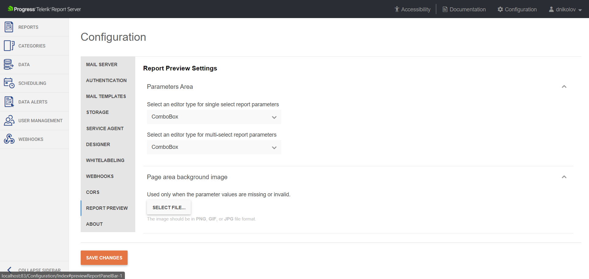 I'm unable to find a setting in Telerik Report Designer where I can change the report server parameter list to a dropdown list.