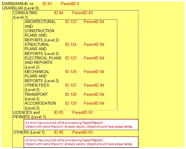 Object with name 'SubReport1' already exists. Object should have unique names.