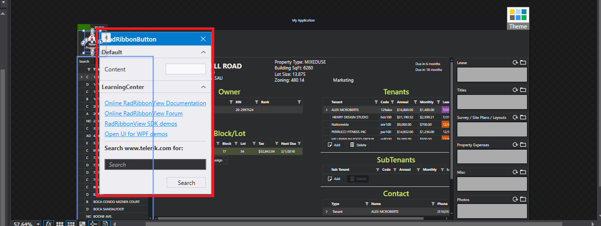 The issue is connected with the Smart Tags functionality which provides easy way to go to helpful documentation articles and demos related to each control. But it should not appear when click on a control in xaml view. You said that it "reappears when click another telerik control" - it is reproducible with other controls (except ribbon controls) too?