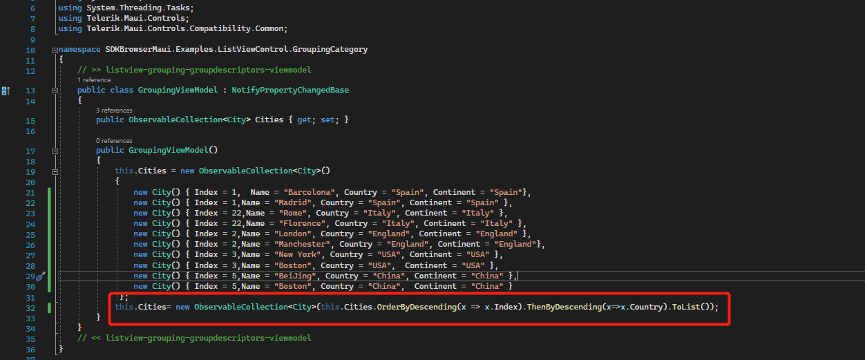 <telerik:RadListView.GroupDescriptors> <telerik:ListViewPropertyGroupDescriptor PropertyName="Index" SortOrder="Descending"/> </telerik:RadListView.GroupDescriptors>