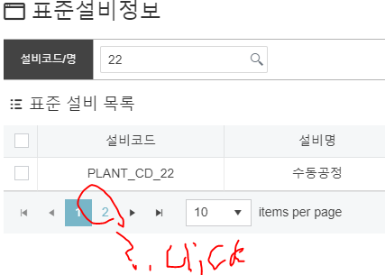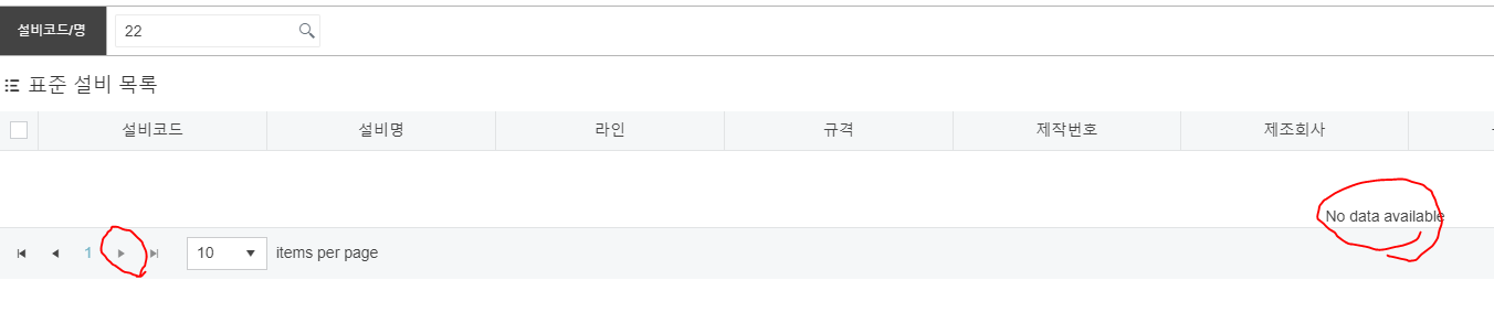 [1, 2 Page] is maintained, “No data available" appears when page 2 is pressed, and page 2 disappears.