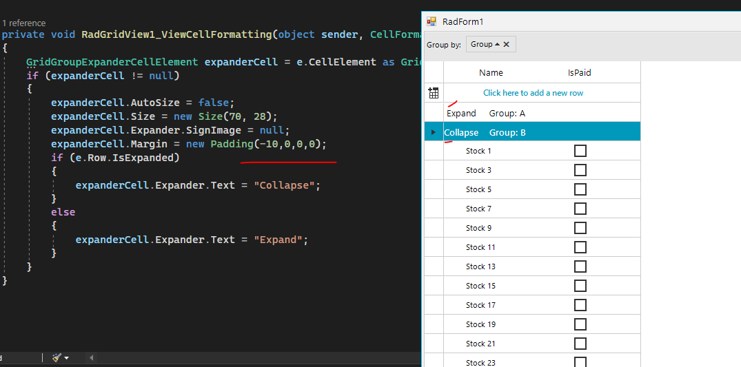 How do I remove the symbol (up arrow) to Collapse/Expand a Group in a GridView