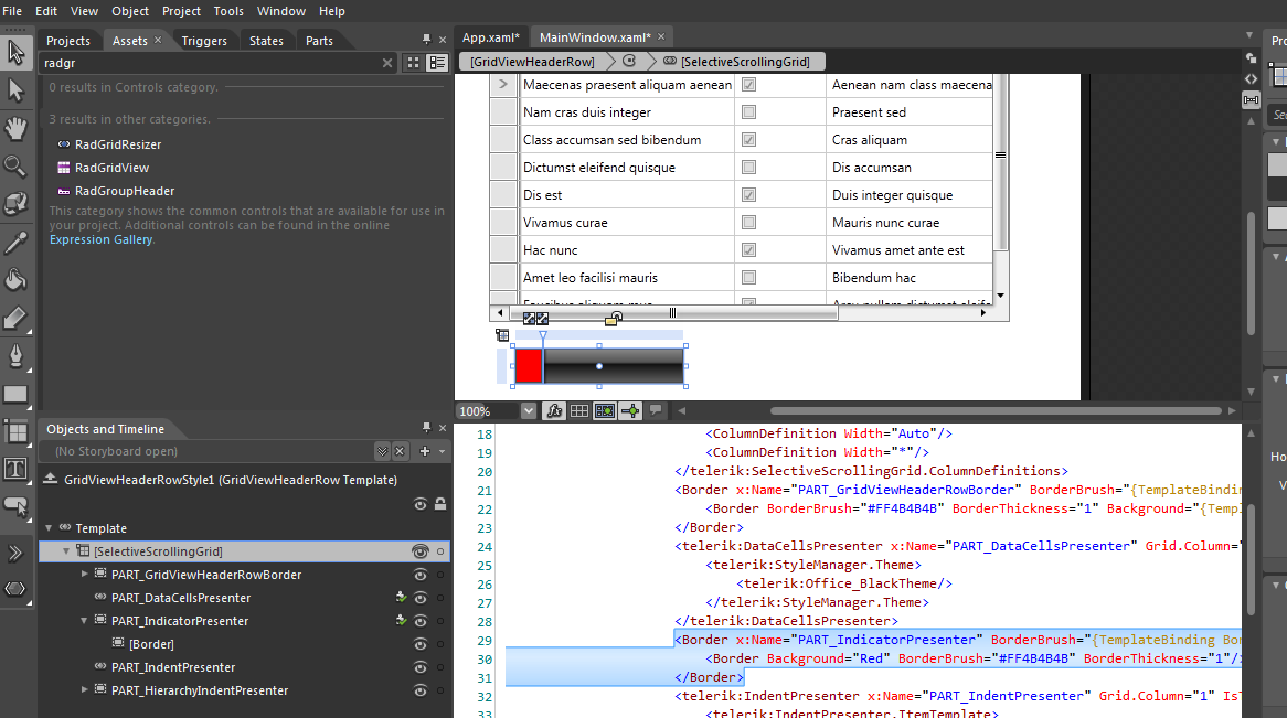 <Style TargetType="telerik:GridViewHeaderCell"> <Setter Property="Background" Value="Blue"/> <Setter Property="Foreground" Value="Red"/> <Setter Property="FontWeight" Value="Bold"/></Style>