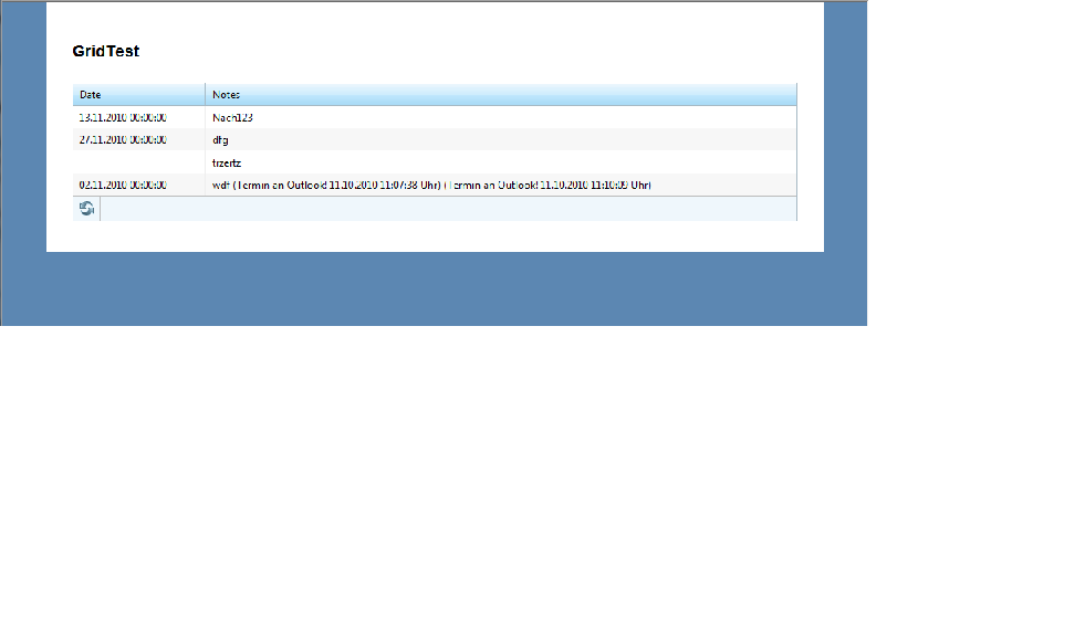 <%@ Page Title="" Language="C#" MasterPageFile="~/Views/Shared/Tabs.Master" Inherits="System.Web.Mvc.ViewPage<dynamic>" %> <asp:Content ID="Content1" ContentPlaceHolderID="TitleContent" runat="server"> GridTest </asp:Content> <asp:Content ID="Content2" ContentPlaceHolderID="MainContent" runat="server"> <h2>GridTest</h2> <% Html.Telerik().Grid<DatePickerTestProject.Models.TabKostenarten>("data") .Name("TestGrid") .Columns(c => { c.Bound(o => o.KostenartID); c.Template(o => { %> <%: o.Kostenarten %> <% }).Title("Kostenarten"); }) .Render(); %> </asp:Content>I attached my sample project if that helps.