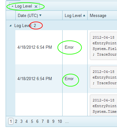 One of the columns is a Log Level column. The data source field (Level) is an integer. I have that column declared with the template